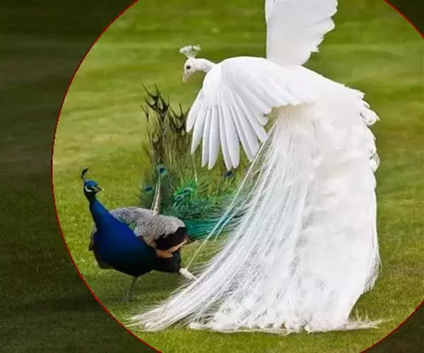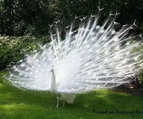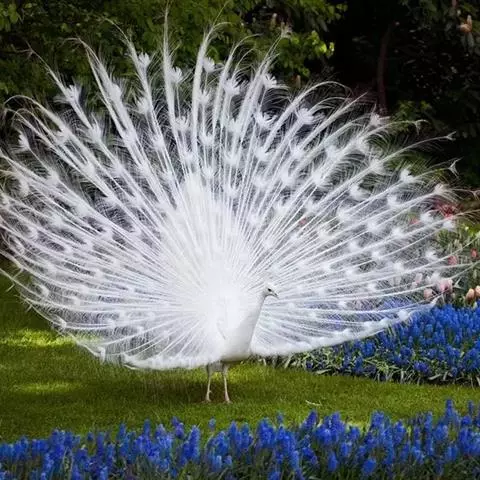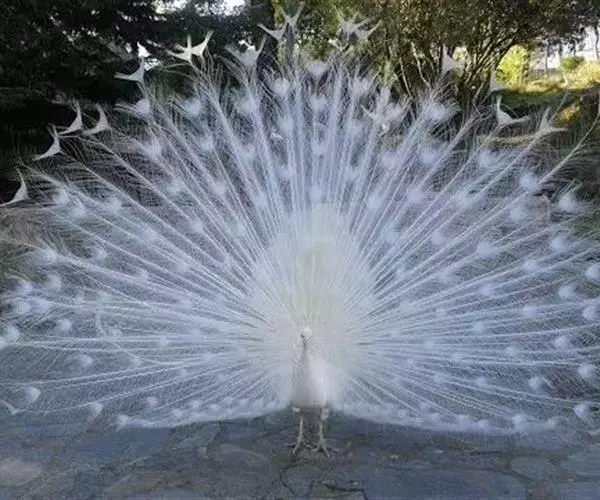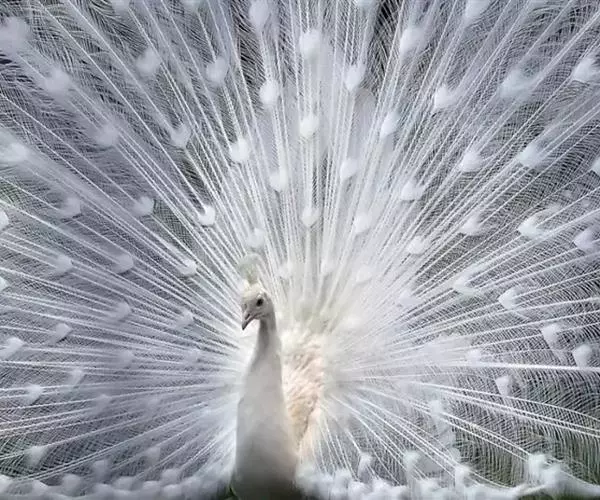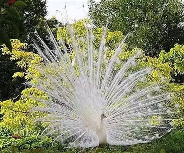 白孔雀,脊椎动物,鸟纲,雉科。其全身洁白无瑕,羽毛无杂色,眼睛呈淡红色