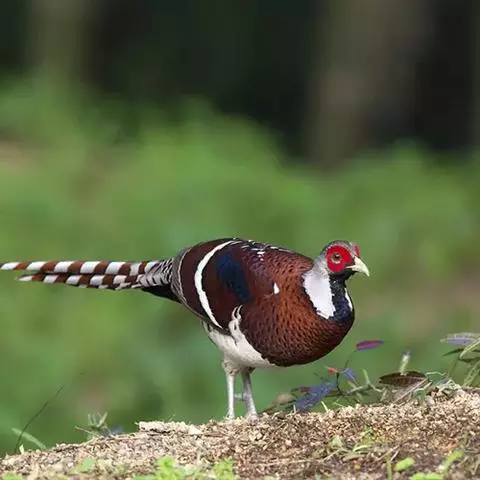 白颈长尾雉:大型鸡类,体长81厘米,体型大小和雉鸡相似。雄鸟头灰褐色,颈白色,脸鲜红色,其上后缘有…