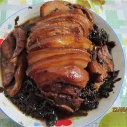 梅菜扣肉,汉族传统名菜,属客家菜 。制作材料有五花肉、梅菜、葱白、姜片等。
