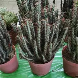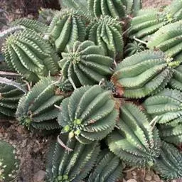 魁伟玉原产南非,是一种大戟科的多年生肉质植物,植株具粗圆筒形肉质茎,有10条以上的突出棱,…