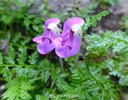 花白色或有时淡紫色;花梗细,长4-9厘米,上部有2枚线形小苞片;萼片披针形,长3-5毫米,宽1.5-2毫米,先端稍尖,基部附属物短,末端截形,边缘膜质;花瓣倒卵状长圆形,上方花瓣长1-1.2厘米,宽约4毫米,侧方花瓣与上方花瓣近等大,里面无须毛,下方花瓣较短,连距长约9毫米,有紫色脉纹;距较短,长约2毫米,囊状;花药长约1.5毫米,药隔顶端附属物长约1毫米,下方雄蕊之距钝角状,长约1.5毫米;子房球形,有褐色腺点,花柱棍棒状,基部膝曲,柱头两侧及后方有狭缘边,前方具短喙。