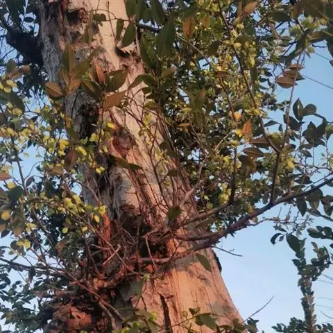 更为神奇的是树身表皮极似豹皮纹身,四季色变,甚为罕见。该树龄距今已有1600余年,全国范围内仅有四棵,被专家称为林木中的活化石。