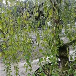 树干上部的主干不明显,分枝较多,树冠伞形;树皮灰白色,较光滑;一至三年生枝下垂而不卷曲或扭曲。