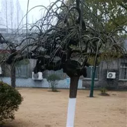 树皮暗灰色,粗糙,不规则纵裂。幼树枝条直立,且被白色毛;老树枝条先端下垂,有时木栓质发达成为瘤状。…