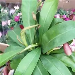 二齿猪笼草与苹果猪笼草杂交种通常更接近苹果猪笼草(Nepenthes ampullaria)的特点,它们往往很小。