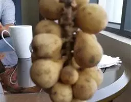 龙宫果是楝科雷楝属植物品种。椰色果(Yan Se Guo),别称榔色木,国内看到的应为 Duku-Langsat 杜古-榔色果;香港称卢菇;台湾称兰撒果。常绿乔木或灌木。羽状复叶或3小叶;小叶全缘。花小,近球形;杂性异株;雄花序圆锥状,雌花序总状或穗状,腋生。萼5深裂;花瓣5,分离,基部与花丝筒合生;花丝筒球形或圆柱形,花药10,2轮,内藏;花盘不明显;子房3-5室,每室2胚珠,花柱极短或无,柱头3-5浅裂。