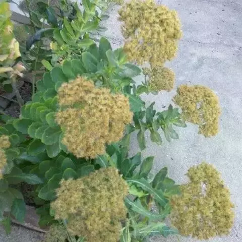 轮叶八宝,又名一代宗《中国植物志》。多年生草本,高40-100cm。须根细。茎直立,不分枝。4叶轮生,少有5叶轮生,下部常为3叶轮生或对生;有柄;叶片长圆状披针形至卵状披针形,长4-8cm,宽2.5-3.5cm,先端急尖,基部楔形,边缘有整齐的疏牙齿,叶下面常带苍白色。聚伞状伞房花序,顶生;花密生,形成半圆球形;苞片卵形;萼片5,三角状卵形,长0.5-1mm,基部稍合生;花瓣5,淡绿色至黄白色,长圆状椭圆形,长3.5-5mm,先端急尖,基部渐狭,分离;雄蕊10,2轮,与花萼对生的稍长于花瓣,与花瓣对生的稍短;鳞片5,线状楔形,长约1mm,先端微缺;心皮5,倒卵形至长圆形,长2.5-5mm,花柱短。蓇葖果。种子狭长圆形,长0.7mm,淡褐色。花期7-8月,果期9月。