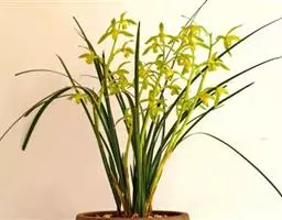 建兰四大铭品之一。夏皇叶形为长鱼肚型,叶尾稍钝,叶面波浪纹稍重!叶片厚实!花为黄白色,稍偏黄,两捧…