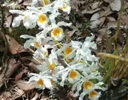 翅梗石斛:茎丛生,肉质状粗厚,呈纺锤形或有时棒状,不分枝,具3-5节,干后金黄色。叶厚革质,…