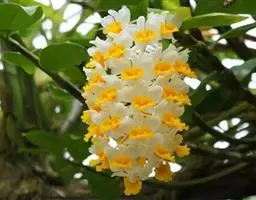 串珠石斛:茎悬垂,肉质,细圆柱形,近中部或中部以上的节间常膨大,多分枝,…