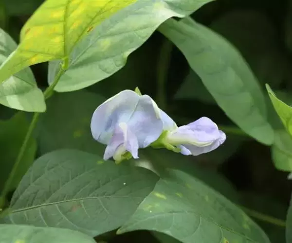 总状花序腋生,长1-10厘米,有花2-10朵;总花梗长5-15厘米;小苞片近圆形,直径2.5-4.5毫米;花萼绿色,钟状,长约1.5厘米;旗瓣圆形,直径约3.5厘米,外淡绿,内浅蓝,顶端内凹,基部具附属体,翼瓣倒卵形,长约3厘米,浅蓝色,瓣柄中部具丁字着生的耳,龙骨瓣稍内弯,基部具圆形的耳,白色而略染浅蓝;对旗瓣的1枚雄蕊基部离生,中部以上和其它雄蕊合生成管,花药同形;子房具短柄,无毛,胚珠多颗,花柱长,弯曲,柱头顶生,柱头周围及下面被毛。