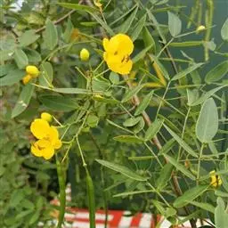 双荚决明 Roxb.)是豆科、决明属直立灌木,多分枝,无毛。叶长7-12厘米,有小叶3-4对,…