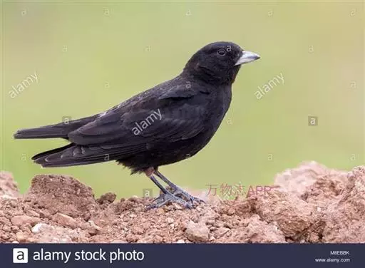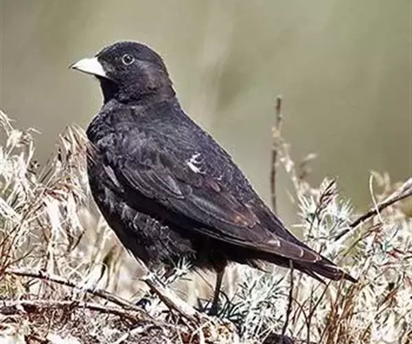 黑百灵属于雀形目百灵科,鸣禽。体重约60克,体长约200毫米。嘴短而直。雄体羽毛近全黑色。后趾爪长而直。雌体羽色较淡,多呈污白色,并杂以褐色斑。仅发现于准噶尔盆地南缘。地面觅食、活动 。