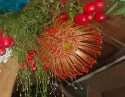 帝王花,山龙眼科帝王花属多年生常绿灌木植;茎干粗壮,叶色翠绿光亮;花朵呈圆球状;其苞片有的完全打开,…