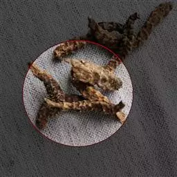 性状鉴别 茎呈方柱形,长5-45cm,表面略带紫色,被稀疏毛茸。叶多皱缩或破碎,完整者展平后呈肾形或圆形,基部心形或圆形,边缘具圆齿或小裂,两面被毛;茎生叶无柄,根出叶具柄。轮伞花序。小坚果长圆形,具3棱,先端截形,褐黑色,表面有白色疣突。质脆。报导微,味苦。