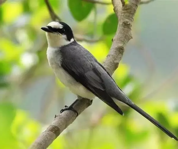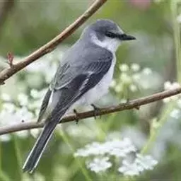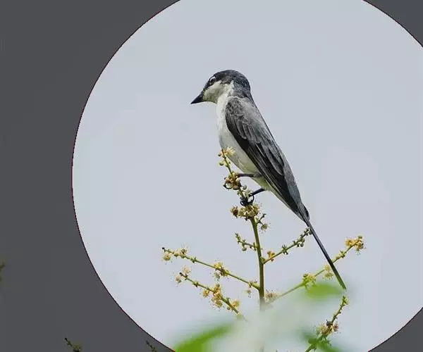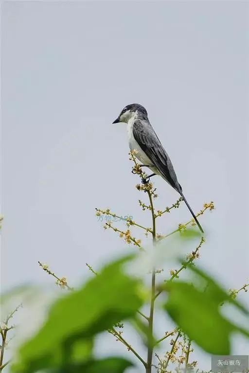灰山椒鸟(学名:Pericrocotus divaricatus):体长18-20厘米。上体灰色或石板灰色,两翅和尾黑色,翅上具斜行白色翼斑,外侧尾羽先端白色。前额、头顶前部、颈侧和下体均白色,具黑色贯眼纹。雄鸟头顶后部至后颈黑色,雌鸟头顶后部和上体均为灰色。