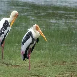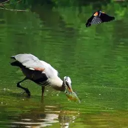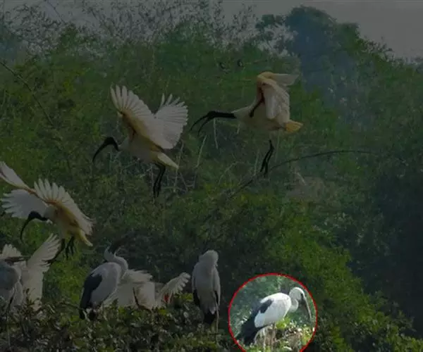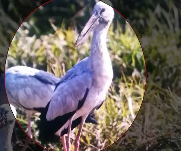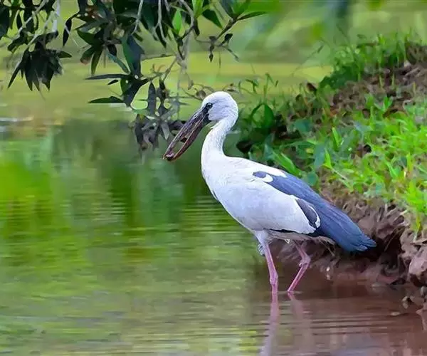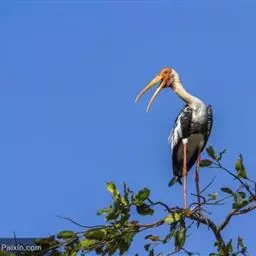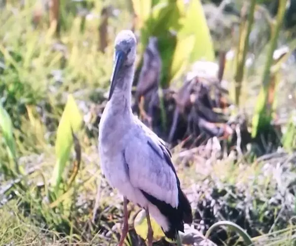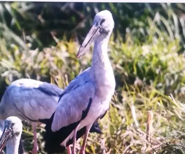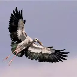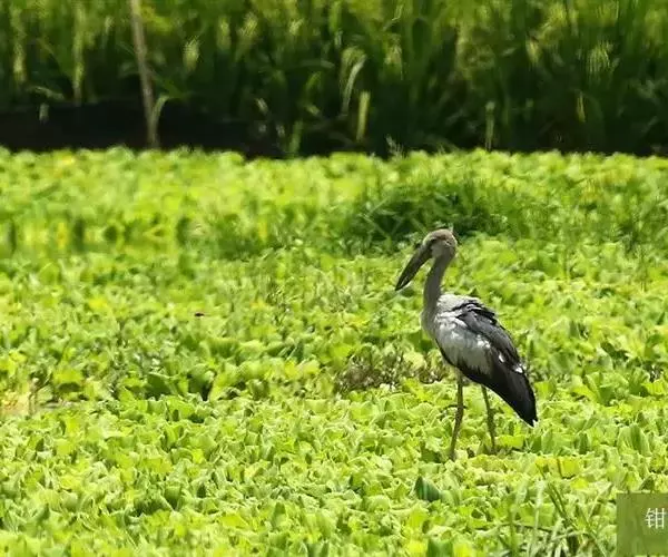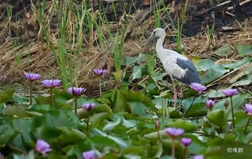 钳嘴鹳(学名:Anastomus oscitans):鹳科动物。双翅展开时宽达81厘米。体型很大,体长81厘米。体羽白色至灰色,冬羽烟灰色。飞羽和尾羽黑色。下喙有凹陷,喙闭合时有明显缺口。虹膜白色至褐色;脸部裸露皮肤灰黑色;喙淡绿的角质色或红色;脚粉红色。