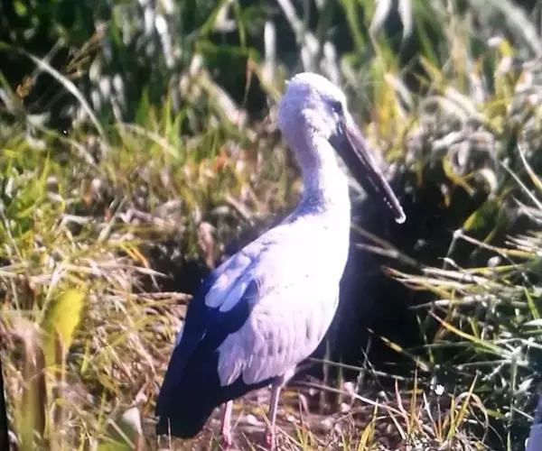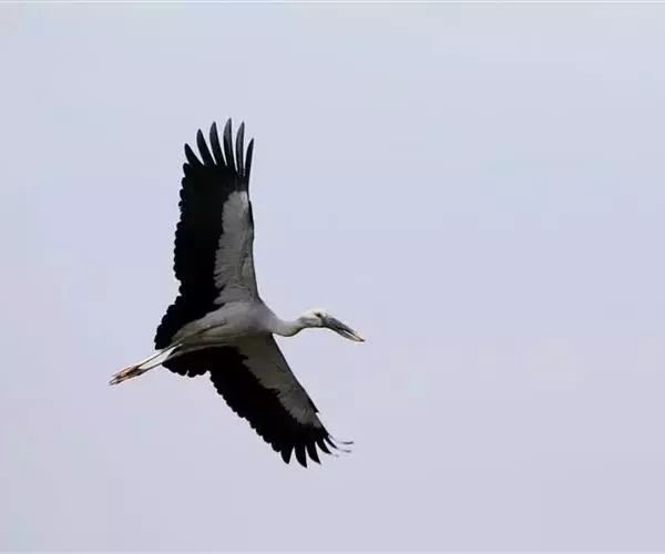 钳嘴鹳往往被误认为苍鹭,而它不属于鹤,而是另一种大鸟。鹳一般有较重的鸟喙,飞行时脖子伸出,而不能像鹤那样弯曲和缩回。
