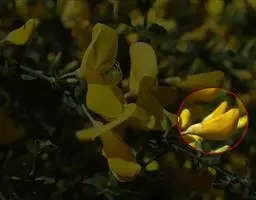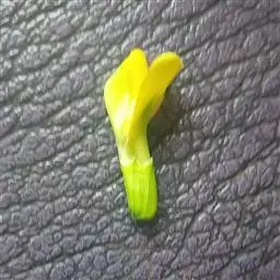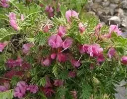 花梗长6-15毫米,密被柔毛,关节在中上部;花萼管状钟形,长8-9毫米,宽4-6毫米,密被伏贴短柔毛,萼齿三角形或披针状三角形;花冠长20-23毫米,旗瓣宽卵形或近圆形,先端截平而稍凹,宽约16毫米,具短瓣柄,翼瓣瓣柄细窄,稍短于瓣片,耳短小,齿状,龙骨瓣具长瓣柄,耳极短;子房披针形,无毛。荚果扁,披针形,长2-2.5厘米,宽6-7毫米,有时被疏柔毛。花期5月,果期6月。