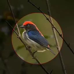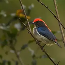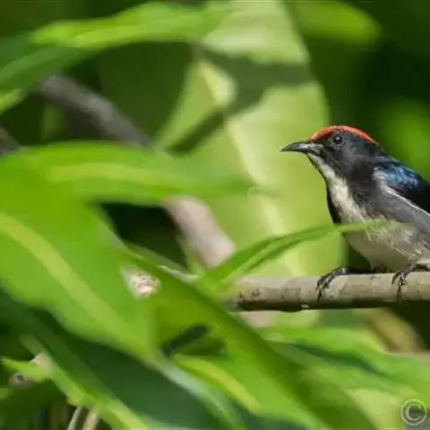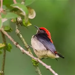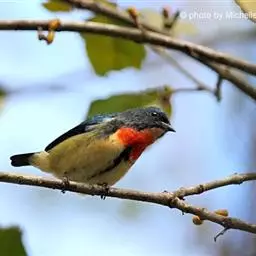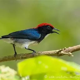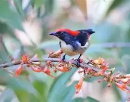 朱背啄花鸟:体重6-8克,体长81-97毫米。是一种小型的黑色及红色啄花鸟。雄鸟顶冠、背及腰猩红色,…