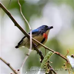 黄腹啄花鸟:体重11-16克,体长104-117毫米。是一种体型大,下腹部为艳黄色的啄花鸟,…