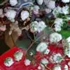 采回插穗后,在阴凉背风处进行剪截,统一截成10cm长的插穗,每根插穗最少有3~4个芽,上部保留1~2片叶子,每片叶剪掉一半,减少水分蒸发,剪口离第一个芽0.5~1.0cm,下部剪口要在芽下剪成斜口,切口要平滑,便于生根。将插穗按100根为一捆绑好,然后集中浸泡在生根剂中,根据配制浓度的大小,掌握浸泡时间。为了防止插穗侵染病菌,要在生根剂内加入少量链霉素。如需临时储藏,需用湿物覆盖或浸水,保证水分不蒸发,以防萎蔫。