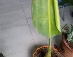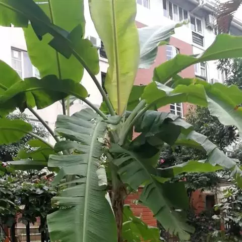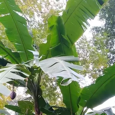 红蕉,假茎高1-2米。叶片长圆形,长1.8-2.2米,宽68-80厘米,叶面黄绿色,叶背淡黄绿色,…