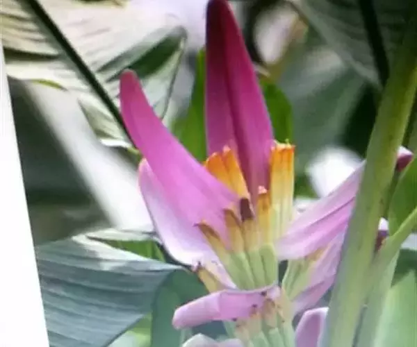 紫苞芭蕉形如一枝亭亭玉立、含苞待放的荷花,但却开在高高的芭蕉树上,这就是紫苞芭蕉。