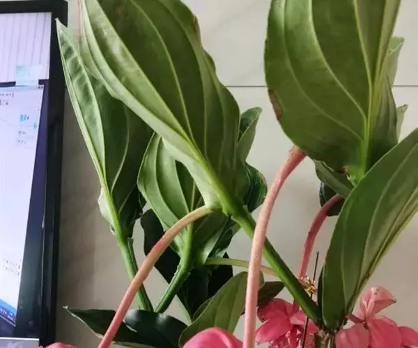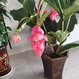 粉苞酸脚杆花株形优美,灰绿色叶片宽大粗犷,粉红色花序下垂,是野牡丹科花卉中属最豪华美丽的一种。盆栽粉苞酸脚杆花最适合宾馆、厅堂、商场橱窗、别墅客室中摆设。