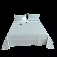 织锦床罩属锦类丝织物,色彩瑰丽、图案精细,具有民族特色,是一种高级床罩。绉地床罩又称泡泡纱床罩,用机织彩条泡泡纱制成,手感柔软。簇绒床罩又称绣绒床罩,可用纯棉、腈纶、丙纶等作原料,用簇绒机将有色纱线固定在底布上,在底布的反面形成一定长度的绒缀,随后按描绘在底布上的花纹重复簇绒,再经缝边、刷绒等整理加工。为避免绒头落毛还可进行湿整理。簇绒床罩的缝边整理是先用多股线四面锁边,随后将床罩的三面用排须装饰,排须的颜色应与床罩的基础色一致。