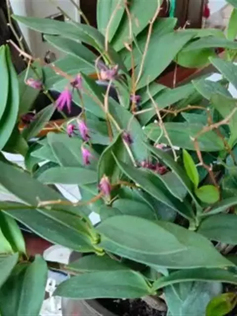 重唇石斛:茎下垂,圆柱形或有时从基部上方逐渐变粗,具少数至多数节。叶薄革质,狭长圆形或长圆状披针形。…