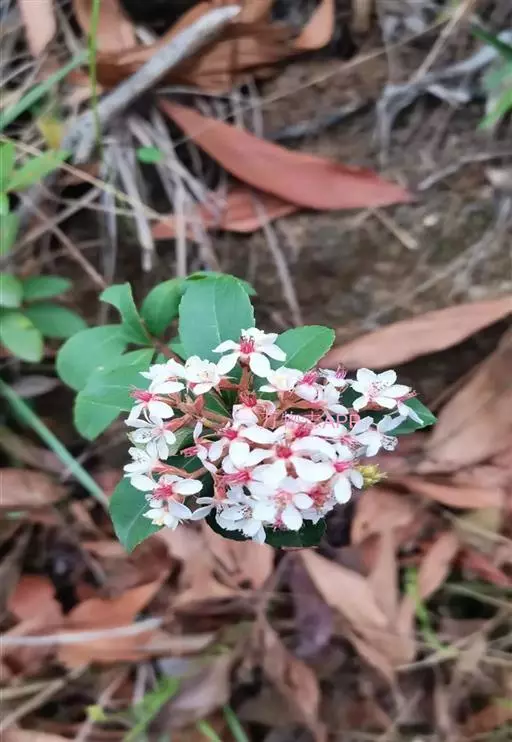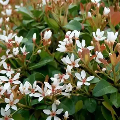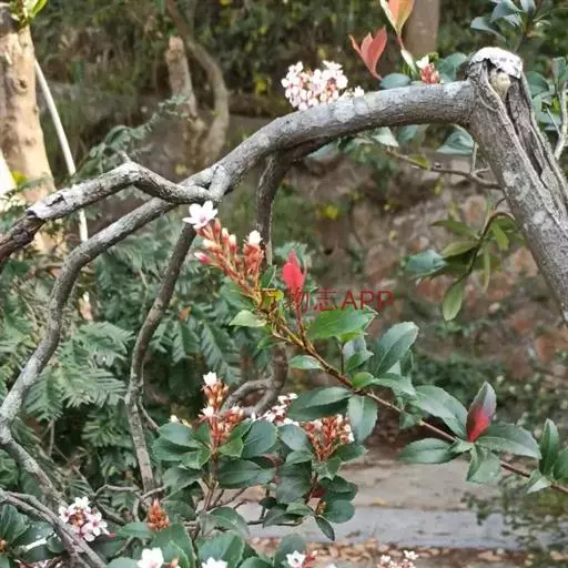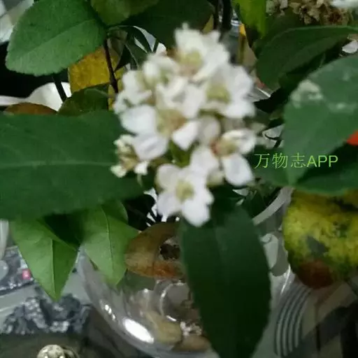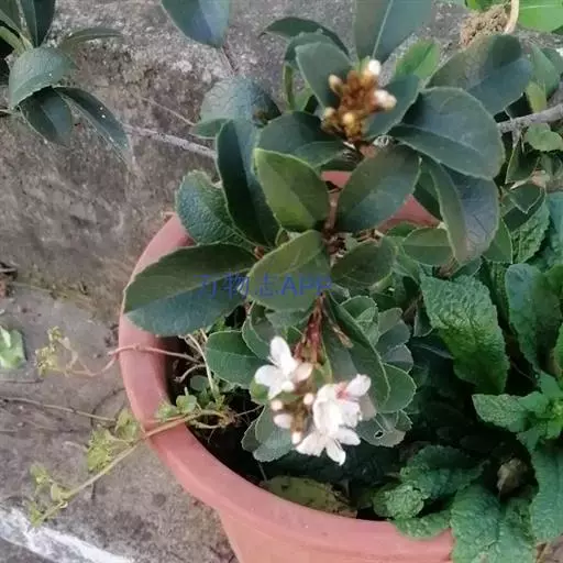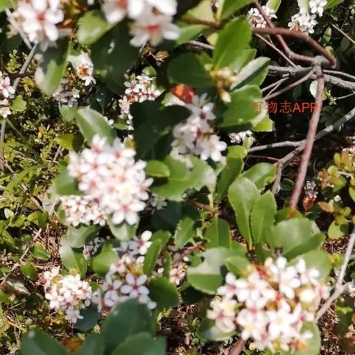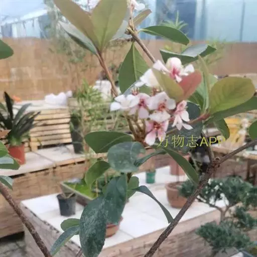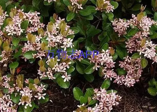Raphiolepisindica,蔷薇科石斑木属常绿灌木或小乔木。染色体数2n=2x=34。高4m,树冠近球形。单叶互生,卵形或长圆形,长2~8cm,多集生枝端,先端渐尖、急尖或圆钝形;顶生圆锥花序,花瓣白色或淡红色,花径1.0~1.3cm,花期4月;梨果球形,...