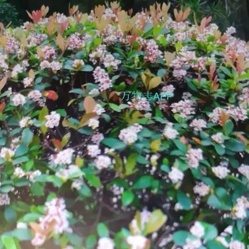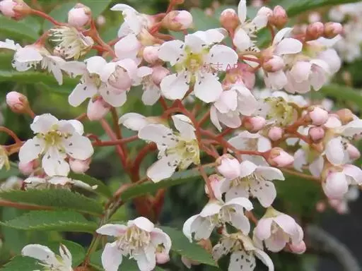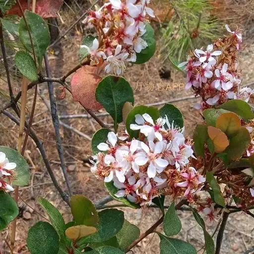 石斑木,别名:春花、雷公树、白杏花、报春花、车轮梅,拉丁文名:Rhaphiolepis indica.原产于中国及印度,主要分布在华东、华南至西南;中亚热带常绿、落叶阔叶林区;南亚热带常绿阔叶林区;热带季雨林及雨林区。其为亚热带树种。花朵美丽,枝叶密生,能形成圆形紧密树冠。在园林中最宜植于园路转角处,或用于空间分隔,或用于作阻挡视线的隐蔽材料。果实可食用。花、枝叶、果实均为高级花材,果实亦可制药。木材带红色,质重坚韧,可作器物;果实可食。