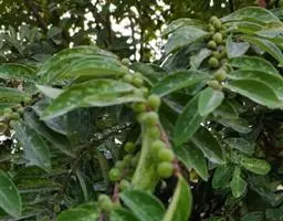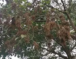 果实采收调制:从生长健壮的树木中采集果实,当果皮曝裂、果核脱落时即可采种。果实采收有两种方法:一是果实成熟时,摇动树干或果枝,让果核自然跌落收集;二是用高枝剪剪断果实已熟的果枝。摘取果实后置于袋中堆沤34天,切记不宜曝晒,待果皮腐烂软化后,在竹筛中用瓦片或木棒搓擦至果皮和果核分离,清水冲洗果肉,除去果皮,即得到种子。银柴的出种率、净度、千粒质量分别为39.23%、99%、96.94克。纯净种子10316粒/千克。