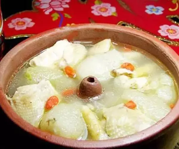 汽锅鸡 汽锅鸡是云南的名菜之一,早在200多年前就在滇南民间流传。建水出产一种别致的土陶蒸锅,叫“汽锅”,是专门用来蒸食物的。