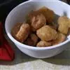 2、将腌好的肉沥干后,放入油锅炸成枣红色捞出;