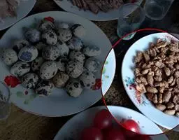 豌豆苗:蔬菜的一种。豌豆的嫩茎叶, 也是苗类蔬菜的一种,又被称为“豌豆尖”“龙须菜”,“龙须苗”.是以蔬菜豌豆的幼嫩茎叶、嫩梢作为食用的一种绿叶菜。在南方特别是江南地区最受欢迎,扬州人在岁首的餐桌上必摆上一盘豌豆苗,以表岁岁平安之意。