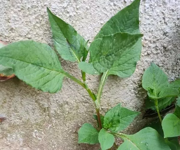 尼泊尔蓼,一年生草本。茎外倾或斜上,自基部多分枝,无毛或在节部疏生腺毛,高20-40厘米。茎下部叶卵形或三角状卵形,长3-5厘米,宽2-4厘米,顶端急尖,基部宽楔形,沿叶柄下延成翅,两面无毛或疏被刺毛,疏生黄色透明腺点,茎上部较小;叶柄长1-3厘米,或近无柄,抱茎;托叶鞘筒状,长5-10毫米,膜质,淡褐色,顶端斜截形,无缘毛,基部具刺毛。