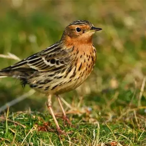 粉红胸鹨:属小型鸣禽,体重18-27克,体长13-18厘米。非繁殖期粉皮黄色的粗眉线明显,背灰而具…