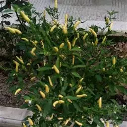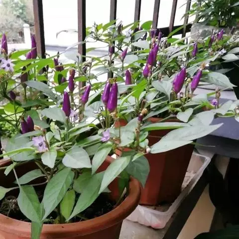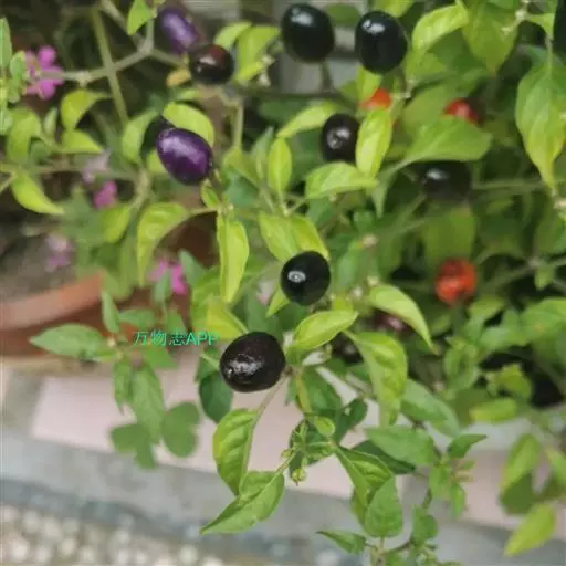 一年生或有限多年生植物;高40-80厘米。茎近无毛或微生柔毛,分枝稍之字形折曲。叶互生,枝顶端节不伸长而成双生或簇生状,矩圆状卵形、卵形或卵状披针形,长4-13厘米,宽1.5-4厘米,全缘,顶端短渐尖或急尖,基部狭楔形;叶柄长4-7厘米。花单生,俯垂;花萼杯状,不显著5齿;花冠白色,裂片卵形;花药灰紫色。果梗较粗壮,俯垂;果实长指状,顶端渐尖且常弯曲,未成熟时绿色,成熟后成红色、橙色或紫红色,味辣。辣椒花有两种,一种是白的,一种是紫的,两种花都有四瓣花瓣至六瓣花瓣三种。而且两种花结出来的辣椒也有所不同:紫花结出来的辣椒是紫的,而白花结出来的辣椒就是普通的红辣椒。种子扁肾形,长3-5毫米,淡黄色。花果期5-11月。 [1-2]