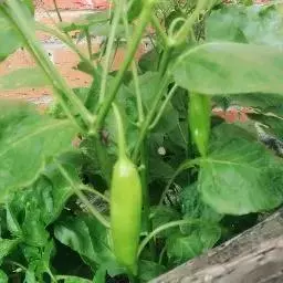 辣椒,别名:牛角椒、长辣椒、菜椒、灯笼椒,拉丁文名:Capsicum annuum L.,为木兰纲、茄科、辣椒属一年或有限多年生草本植物。茎近无毛或微生柔毛,分枝稍之字形折曲。叶互生,枝顶端节不伸长而成双生或簇生状,矩圆状卵形、卵形或卵状披针形,全缘,顶端短渐尖或急尖,基部狭楔形;花单生,俯垂;花萼杯状,不显著5齿;花冠白色,裂片卵形;花药灰紫色。果梗较粗壮,俯垂;果实长指状,顶端渐尖且常弯曲,未成熟时绿色,成熟后成红色、橙色或紫红色,味辣。种子扁肾形,淡黄色。