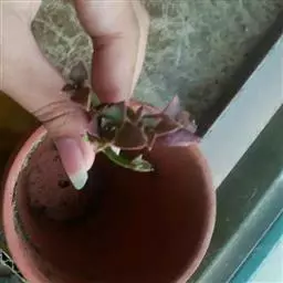 2.入盆前用瓦片在盆底的透水孔搭“人”字形,加上卵石,再加入营养土,使盆土低于盆口2cm,挖好5-7cm见方的穴。