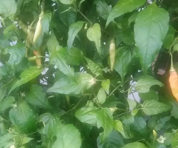 植物体高可达1米。叶卵状披针形,叶柄细长。花在枝下部常单生,在枝顶端由于节间极短缩而数朵花(可达8-10朵和数个叶一起呈簇生状),花梗细瘦,直立或斜升,花稍俯垂。果梗粗壮,直立,浆果指状或圆锥状,长4-10厘米,微弓曲,在梗上直立生,成熟后成红色,味很辣。