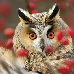 长耳鸮(学名:Asio otus),耳羽簇长,位于头顶两侧,竖直如耳。面盘显著,棕黄色,皱翎完整,白色而缀有黑褐色。上体棕黄色,而密杂以粗著的黑褐色羽干纹;颏白色,其余下体棕白色而具粗著的黑褐色羽干纹。腹以下羽干纹两侧具树枝状的横枝。跗蹠和趾密被棕黄色羽,眼橙红色。以小鼠、鸟、鱼、蛙和昆虫为食。对于控制鼠害有积极作用,应大力保护。属于中国国家二级保护动物。