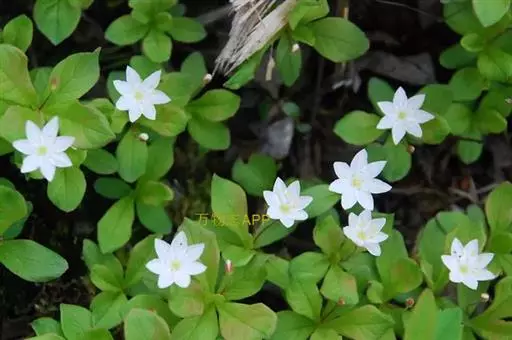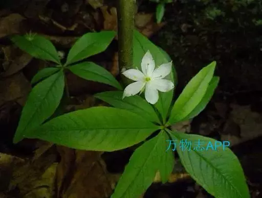 根茎纤细,横走,末端常膨大成块状,具多数纤维状须根。茎直立,高 5-25厘米。叶5-10枚聚生茎端呈轮生状,叶片披针形至倒卵状椭圆形,长2-7厘米,宽1-2.5厘米,先端锐尖或稍钝,基部楔形至阔楔形,具短柄或近于无柄,边缘全缘或具不明显的微细圆齿;茎下部叶极稀疏,通常仅1-3枚,甚小,长3-7毫米,宽1-2毫米,或呈鳞片状。花1-3朵,单生于茎端叶腋;花梗纤细,长2-4厘米;花萼分裂近达基部,裂片线状披针形,长4-7毫米;花冠白色,比花萼约长1倍,裂片椭圆状披针形,先端锐尖或具骤尖头;雄蕊比花冠稍短,长4-5毫米;子房球形,花柱约与雄蕊等长。蒴果直径2.5-3毫米,比宿存花萼短。花期5-6月;果期7月。 [1-2]