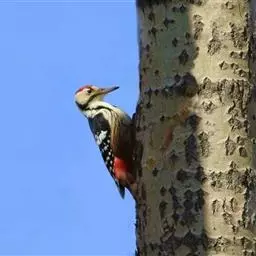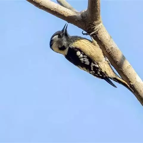小斑啄木鸟,是啄木鸟科、啄木鸟属的小型鸟类,体长14-18厘米。额和颊白色,头顶雄鸟红色,雌鸟黑色。…
