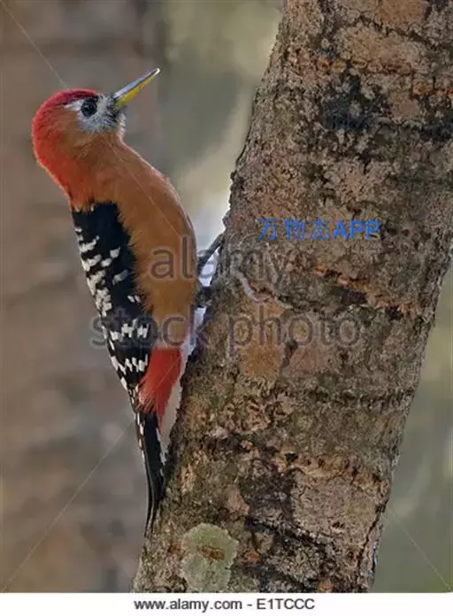 棕腹啄木鸟为啄木鸟科,啄木鸟属是中等体型的鸟类,体长约20厘米。头顶部具红色斑带。脚强健,有趾4个,…