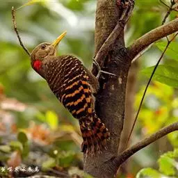 栗啄木鸟:是一种红褐色啄木鸟,体长21厘米。雄性成鸟整个头棕色,…