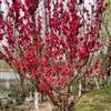 红叶碧桃株高3—5米,树皮灰褐色,小枝红褐色。单叶互生,卵圆状披针形,幼叶鲜红色。花重瓣、桃红 色。核果球形,果皮有短茸毛,内有蜜汁。三月份先花后叶,烂漫芳菲,妩媚可爱,是优良的观花树种。