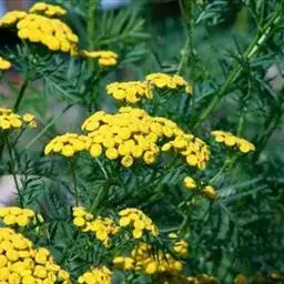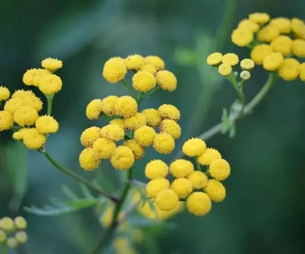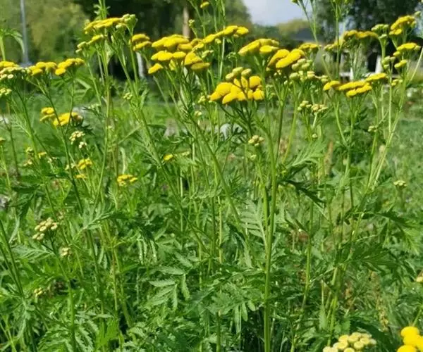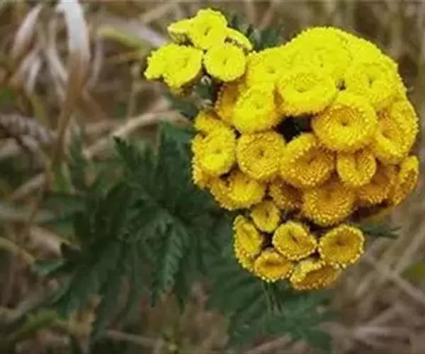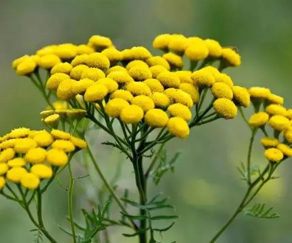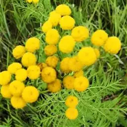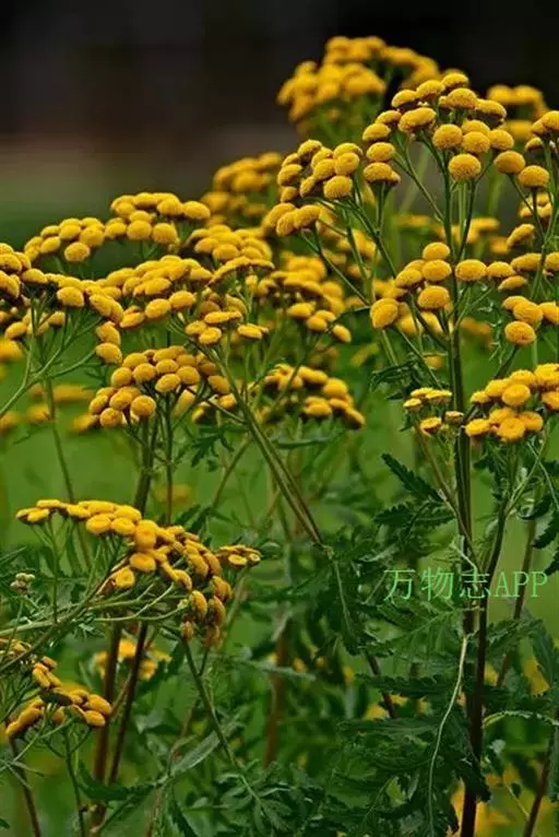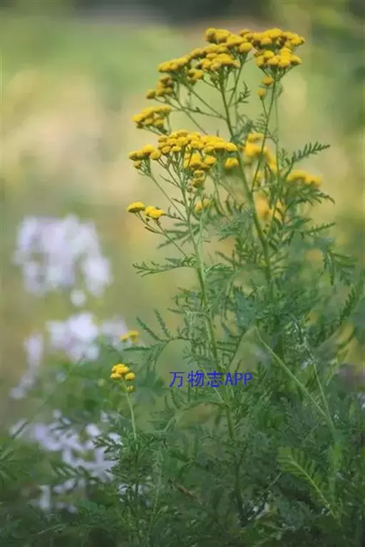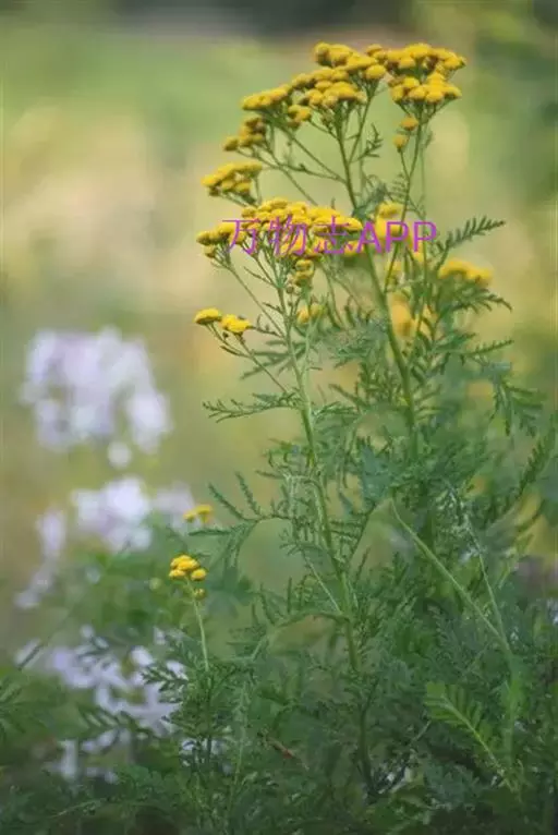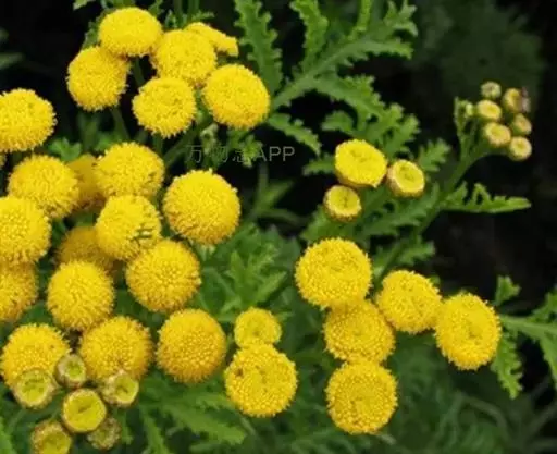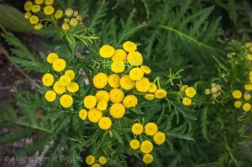 菊蒿,别名:艾菊,拉丁文名:Tanacetum vulgare L. 菊科、菊蒿属多年生草本,茎常无毛:无营养短枝。茎生叶多数,椭圆形或椭圆状卵形,裂片卵形、线状披针形、斜三角形或长椭圆形,全缘或有浅齿或半裂呈三回羽状分裂,羽轴有节齿;叶绿或淡绿色,有极稀疏毛,下部茎生叶有长柄,中上部茎生叶无柄。头状花序排成稠密伞房或复伞房花序:草质,边缘白或浅褐色窄膜质,先端膜质扩大,外层卵状披针形,中内层披针形或长椭圆形,全部小花管状,冠缘浅齿裂。花果期6-8月。茎及头状花序含杀虫物质,可作杀虫剂。